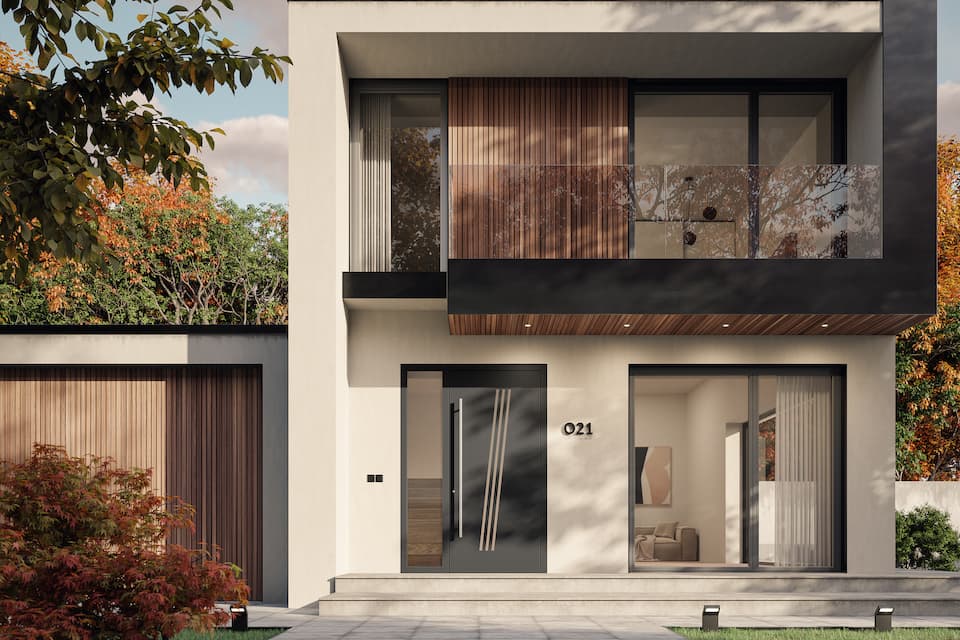 Villa con portoncino d’ingresso in alluminio Atrium75 – Eco di WnD