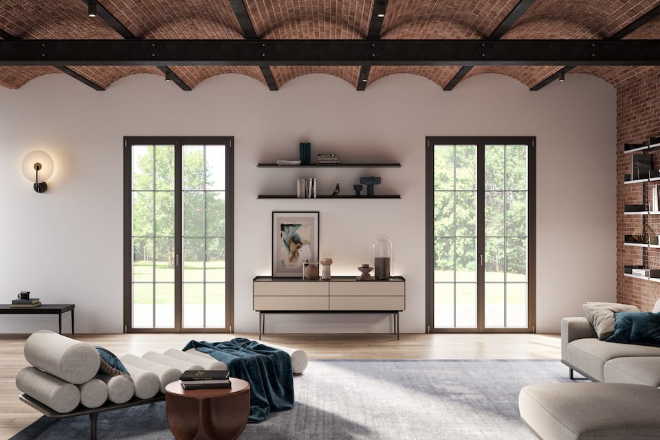 Salotto con porte finestre in alluminio Miru EVO di WnD